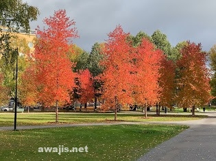 ちょっとの晴れ間に、ムーミン美術館前の公園の紅葉がとてもきれいでした。