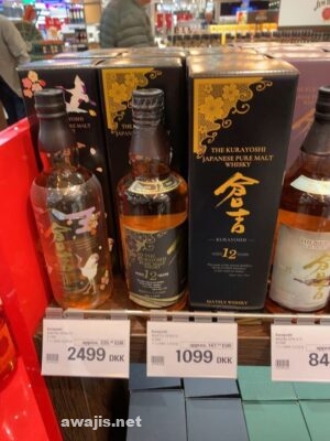 一つは日本のウイスキー。日本酒は、なし。松井ウイスキーの倉吉18年ものは、4万円近くもします。