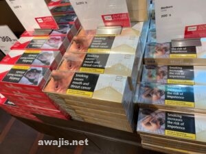 もう一つは、タバコのパッケージの画像。ただ言葉の警告だけでなく、画像も添えられています。”Smoking causes heart attacks.”と心臓発作でお亡くなりになっている画像、”Smoking causes mouth and throat cancer.”という文句と喉に穴が空いた画像、ベッドでがっかり丸まっている男性の画像と”Smoking increases the risk of impotence.”