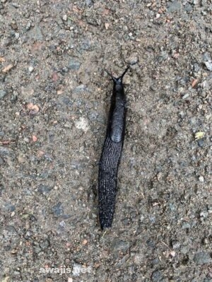 陶芸家たちはせっせと窯詰めをする間、城の廃墟Lilleborgへ犬の散歩。途中、サルミヤッキのようなナメクジ。