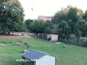 ヒツジやウサギも放し飼いになっているプレーパーク。のどかに気球も飛んでました。