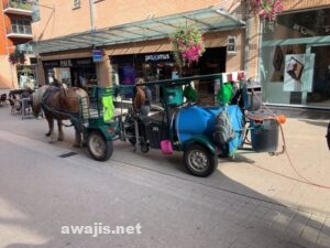 市内中心部は車をシャットアウトする作りになっています。工事や商用車以外は乗り入れできないので、お馬さんも早朝から清掃用水タンクを引っ張って活躍してました。