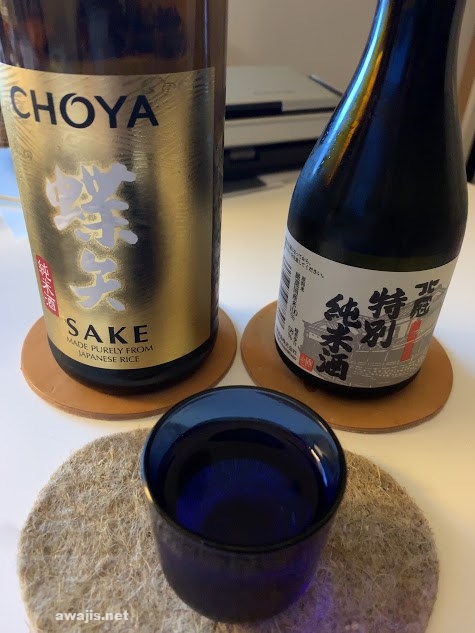 西方、特別純米吟醸酒「蔵街」(北関酒造)300ml, 5,43€。 東方、純米酒「蝶矢」(チョーヤ酒造)750ml, 9,99€。