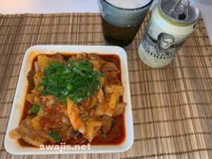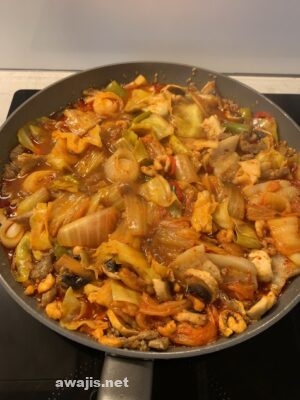 大学からの帰りに、まずはアジア食品店でパック入りのキムチを購入。スーパーには、なかなか豚バラ肉のいいのが出てないのですが、普段とは違うスーパーに行ったら立派なのがありました。併せて,牛肉と小エビも購入。白菜はないので、残っていたキャベツとキノコとネギ。