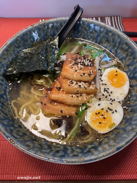 先日、市場へ刺身素材買いに行ったついでに、向学のために市場内のラーメン屋で、ポークラーメンを食べてみました。11,90€、約1400円也。