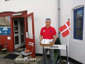 でもって、爆買いして骨董品屋を出たところで記念撮影。