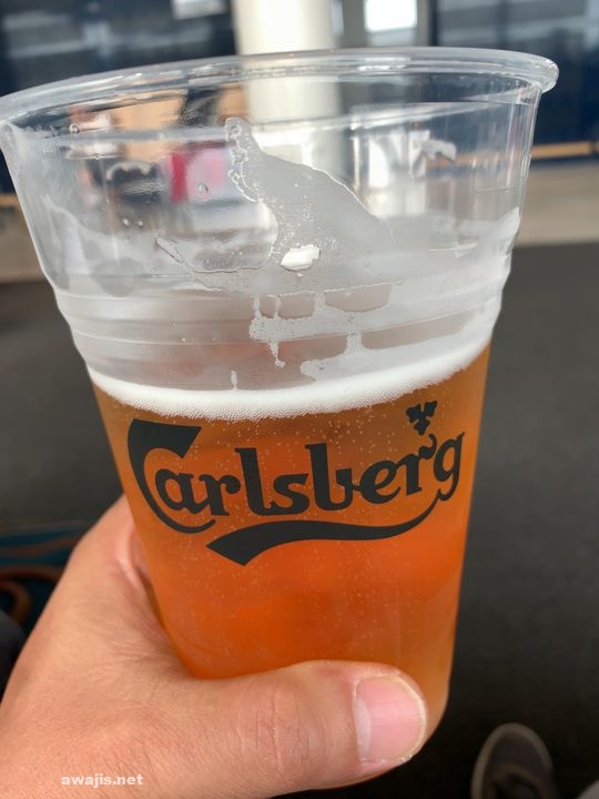 無事コペンハーゲンに着いたら、乗り継ぎのFinnAirがおよそ1時間の遅れ😢 せっかくの待ち時間、デンマークを離れる前にCarlsbergをもう一杯。0.5Lか0.75Lかちょっと迷って大っきいのにしたら、お姉さん“Good choice.”と、商売上手。 ヘルシンキ行きのゲートでは、内容は大してわからないけど、フィンランド語が聞こえてきてなんかホッとする。