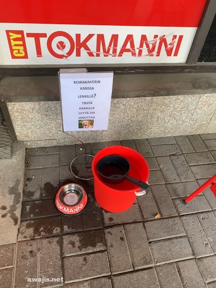 ホームセンター入り口にあった、わんこ用の水飲みサービス。