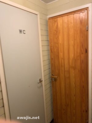 ドアを入ると左右に脱衣所浴室のドアがあり、左右いずれの浴室からも中央にあるサウナに行けるようになってます。