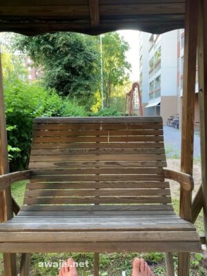 サウナから出た後は、アパートの裏にあるブランコでゆらゆら涼めます。次からビール持ってこよう。