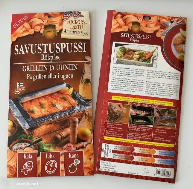 ところでこのスモーク用アルミバッグ、二重になっていて、底の部分にはウッドチップとシロップなどが入っているので、具材を入れてオーブンやグリルに乗せれば、うち袋の中の具材にスモークの風味がついて料理されるという優れもの(って、まだ試してませんが)。1つ2,19€(約260円)。日本で500円でも売れそう。