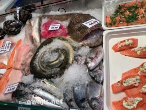 場所はマーケットホールの先なので、マーケット内の「うまみ寿司」でランチ。貫数に応じて10〜18€。写真は大18€。