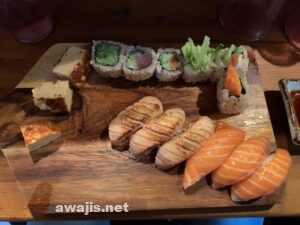 こちらで”Sushi”として供されているものは概してシャリを堅く握り過ぎなのですが、ここのは比較的ふわっとしていました。唯一の難点は玉。厚焼き玉子というか、玉子風味のカスタードケーキという感じ。でも総じて美味しかったです。