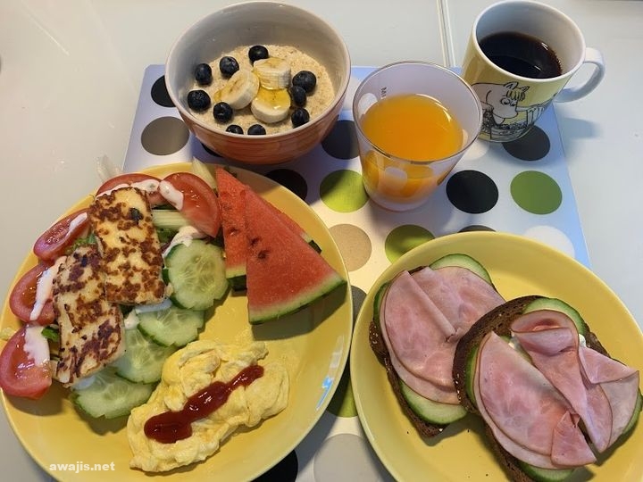 今朝はこれ。ようやくHalloumiチーズとスイカが消化できた。