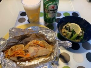 サーモンのホイル焼きと、ネギとわかめのぬたでビール飲みながら、明日の昼向けにタイカレー作ったのはいいけれど、フィンランドのチリペッパーなら大して辛くないだろうといい気に放り込んだら、とんでもない辛さに。