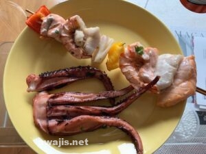 焼く前の方がきれいだったか。ゲソはソフトで美味。市場の魚屋さんの素材はおいしい。
