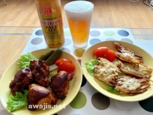 買い物して下宿に戻り、オーブンでコーラチキンを焼き、残ってたジャガイモを千切りにしてパリパリに焼いてからチーズをのせてバター醤油でつまみ風に。