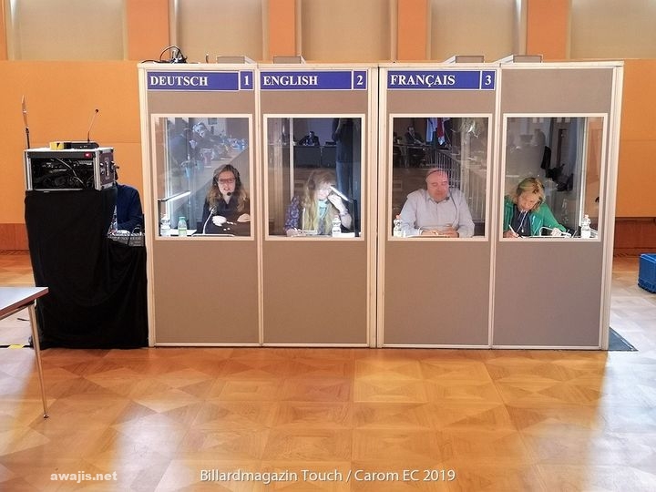 先日観戦してきたキャロムビリヤードのヨーロッパ選手権では、連盟の会議では同時通訳ブースが設置されるんですね。