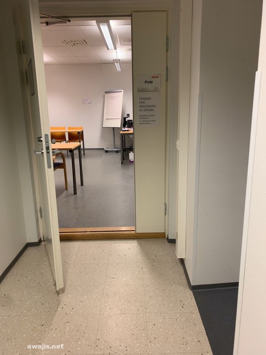 今日からコミュニティカレッジのような学校でフィンランド語基礎の授業開始。 中高生と同じく、授業開始までは教室の外で待つシステム。私以外に8名が待ってます。