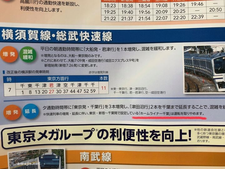 今度のダイヤ改正で、通勤呑兵衛御用達のホームライナーが廃止😢