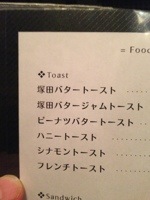 バーボン待つ間にメニューをチェックすると、「塚田トースト」「豚肉と野菜炒めたん」という気になるメニュー発見。