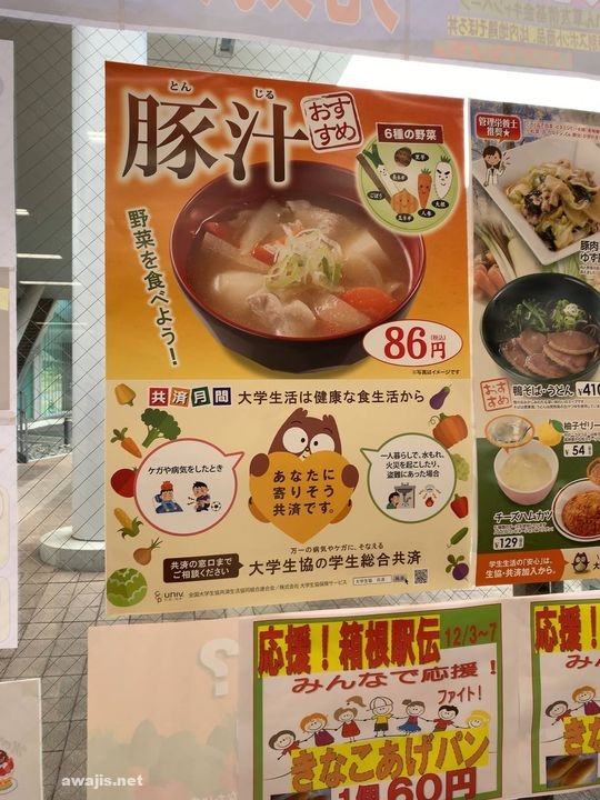 東松山出講の日は、朝ご飯は間に合わないので、握り飯を持参、生協食堂で豚汁を注文して朝ご飯にすることが多い。