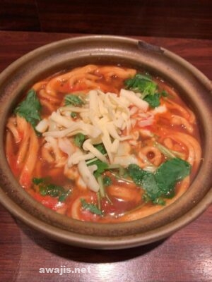 通常の味噌煮込みうどんの他にも、キムチ入りのもの、トマト風味でチーズが入ったイタリアン、カレー味のインディアンがあります。今回も、イタリアン。ハマってます。
