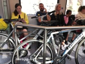 空港行きの電車、チャリもワンコもライライ。