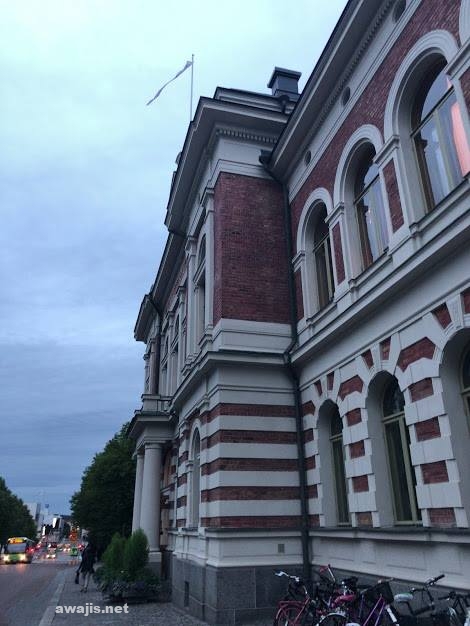 市主催の歓迎リセプションからの帰り、ビールを買い足しておくかと昨日の店に行くと、9時過ぎはアルコールは売れない、らしきことをフィンランド語でまくし立てられ、”Pardon?”のひと言で英語に切り替わり、了解。