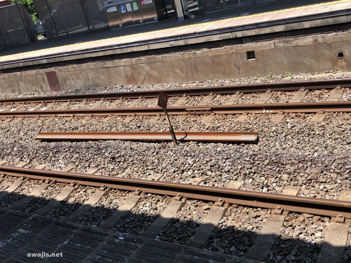 この継ぎ目、列車通過時にはものすごい音を立てる。結構負荷がかかっているようで、継ぎ目部分は他に比べて激しく摩耗している。