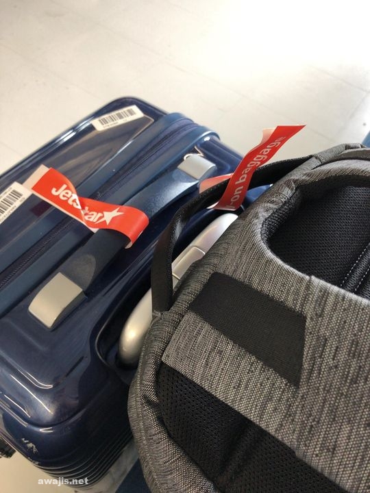 なんとか制限内の重量で収まり、無罪放免テープを貼られて釈放されました。