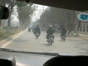二人乗り、三人乗り、民族衣装のアオザイをはためかせさっそうとバイクを駆る若い女性、後ろに乗った人がタンスを担いで運んでいるバイク、お父さんの前に小さな子ども、後ろのお母さんとの間にもう一人の子ども、さらに母親の腕には乳飲み子という5人乗りなど、実にさまざまな乗り方のバイクがひっきりなしに通っていく。